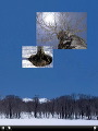 スライドショーに加え、ギャラリーページでは、ひとつひとつのサムネイルアイコンを自由に動かすことが出来ます。しばらくするとサムネイルアイコンが動き出します。また写真の保存機能があり、壁紙に使うことも出来ます。