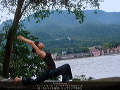 インドの風景を背にヒーリング音楽をBGMとしたヨガポーズスライドショー