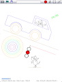 だんごペンは、細い線と文字を描くアプリケーションです。ペン先と3つのボタンをもつ仮想的なペンを使って、曲線や直線、円弧、文字を描きます。ボタンをドラッグすることによって、太い指でも細かく位置調整をしながら線を描くことができます。ボタンの大きさは、iPhoneの日本語をフリック入力するキーボードのボタンとほぼ同じです。さらに細かい位置調整を行うために、スライダーで指先の移動量とペン先の移動量の割合を変化させることができます。また、ペン以外の部分をドラッグしたりダブルタップすると、描かずにペンを移動させることができます。