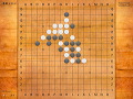 五目並べとは、2人で行うボードゲームの一種。囲碁の道具を用いて行う簡単なゲームで、盤上に交互に石を置いていき、先に石を直線状に5個並べることを競う。