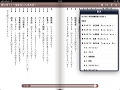 目次、書籍内検索、しおり、マーカー、goo辞書、(文字サイズ、行間、文字色、背景色、背景画像変更)など