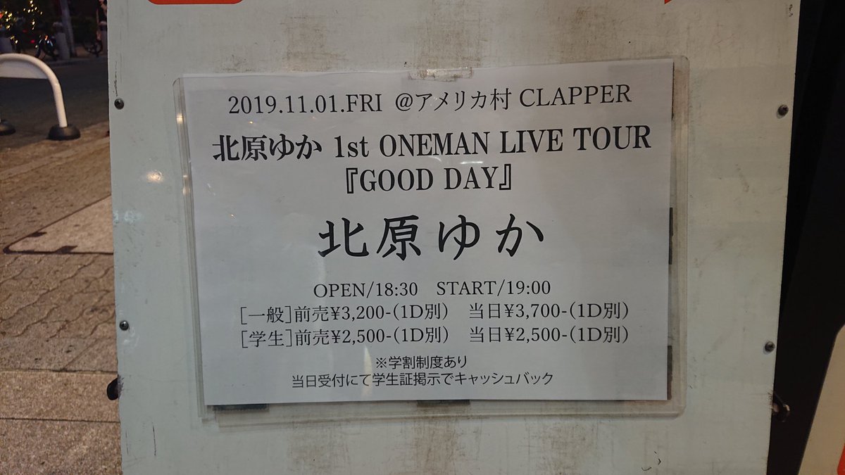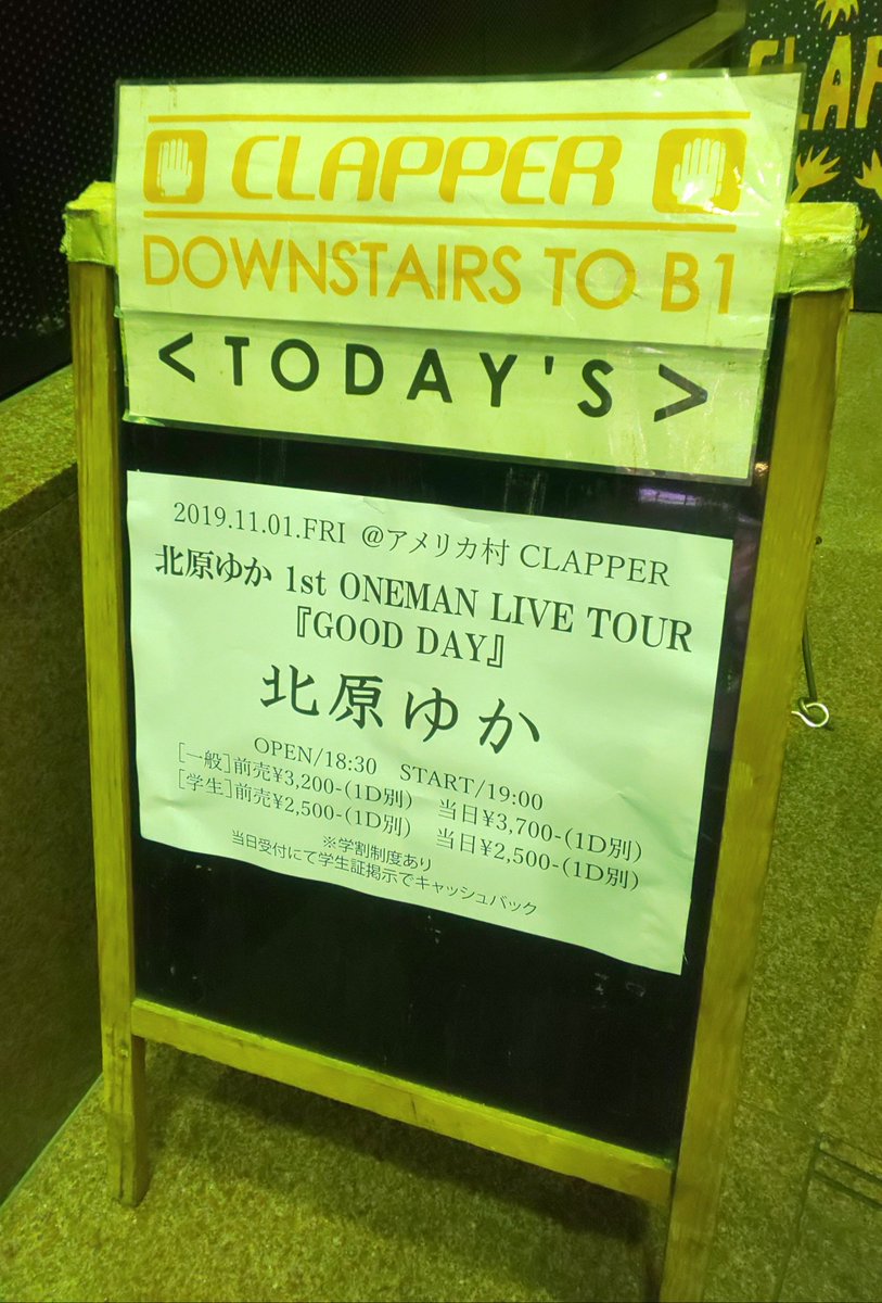 【イベントの内容】 北原ゆかさんが、2019年11月1日、心斎橋Clapperで、初のONEMAN LIVE TOUR「GOOD DAY」大阪公演を行った。 |