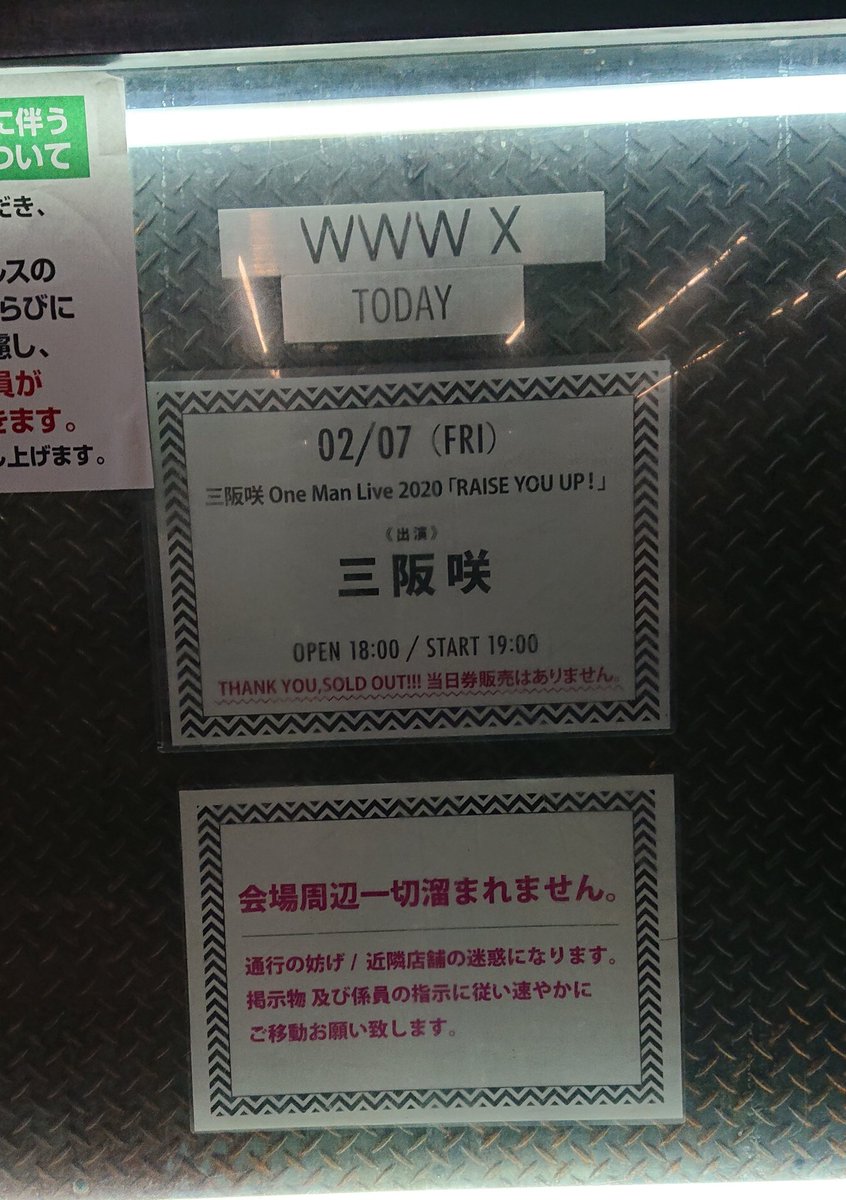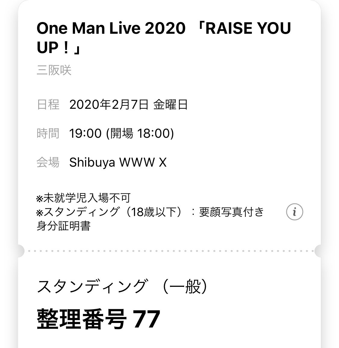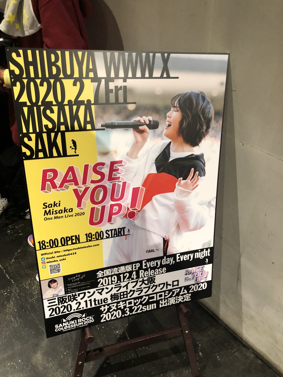 2020年2月7日、三阪咲さんが、渋谷 WWW X(東京)でライブイベント「One Man Live 2020「RAISE YOU UP!」東京」を行った。 |