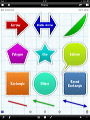 - 線、矢印、縁取りされた矢印、四角形、円、角の丸い四角形、多角形、星、吹き出し、および円弧の図形を配置する事ができます。