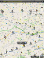 店舗名とおおよその直線距離をバルーン表示します。バルーンからは店舗の詳細(住所、電話番号、営業時間)を表示できます。画面上部には営業時間を簡易表示します(iOS3.2以降のみ)。