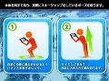 プレイは簡単。本体を両手で持ち、実際にスキージャンプをしているポーズを取りながら両足に均等に力が入るようにバランスを取りつつ、タイミングをみて両足に力を入れて踏み切ってください。