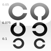 視力検査でつかう「ランドルト環(溝のあいた丸い円)」を表示する視力検査アプリ。まさか、iPadで視力検査できるとは。ただ、操作する人、見る人、2人必要?