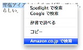 アプリケーションの「サービス」から「Amazon.co.jpで検索」を追加するプラグイン。snow leopard以降対応。