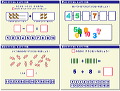 マウスだけで学べる小学校1年生の算数 演習ソフト。かずやすうじ、もの数え方、たしざん、ひきざんなど、1年生で学ぶ算数問題を収録している。